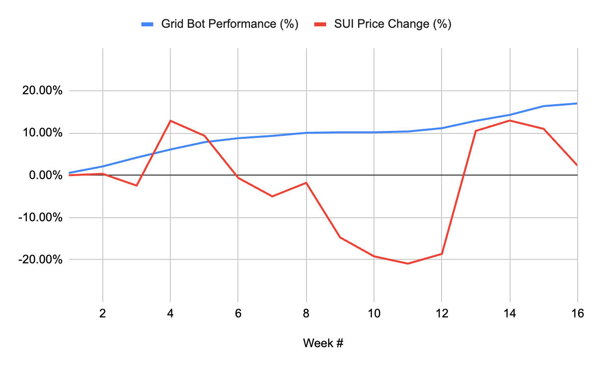 - Unrealized Asset Gain: -2.94%Despite decline in SUI price since 04.25 bot is up 14.20%Overall, our bots have demonstrated 1%–2.2% weekly returns using a combination of spot and leveraged grids
